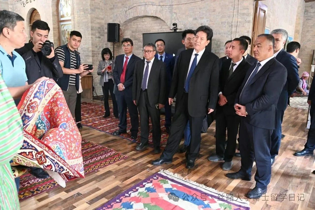 2025年4月8日,全国人大常委会副委员长洛桑江村访问乌兹别克斯坦,到访“丝绸之路”国际旅游与文化遗产大学。洛桑江村委员长分别参观了丝绸之路大学的联合国旅游组织撒马尔罕旅游学院、“山东之窗”、丝绸之路主题旅游路线办公室,同时参看了正在举办的乌兹别克斯坦传统地毯工艺展。