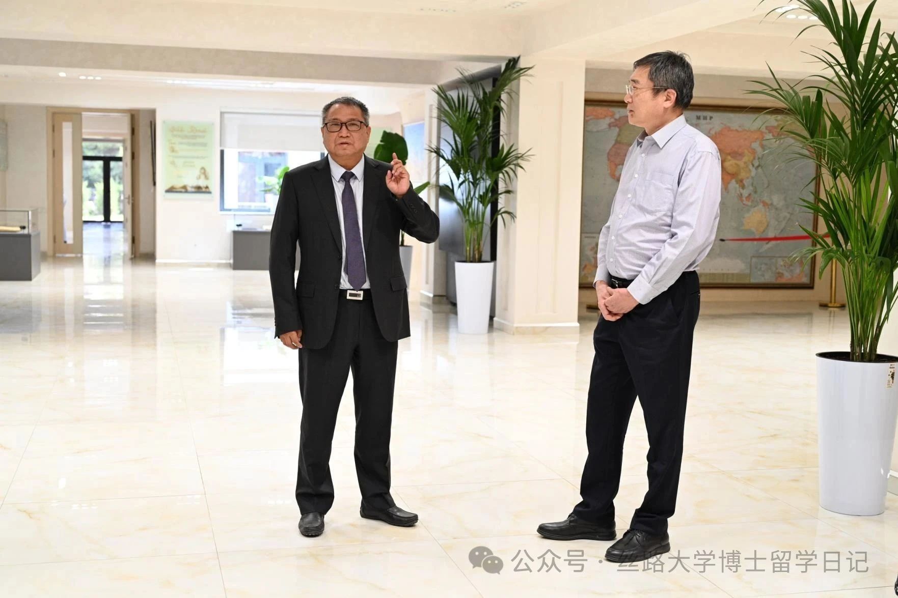 2025年7月2日,世界旅游联盟主席张旭先生率队到访丝路大学,丝路大学副校长迪尔穆罗德·纳西莫夫教授、副校长邹统钎教授热情接待并陪同参观。