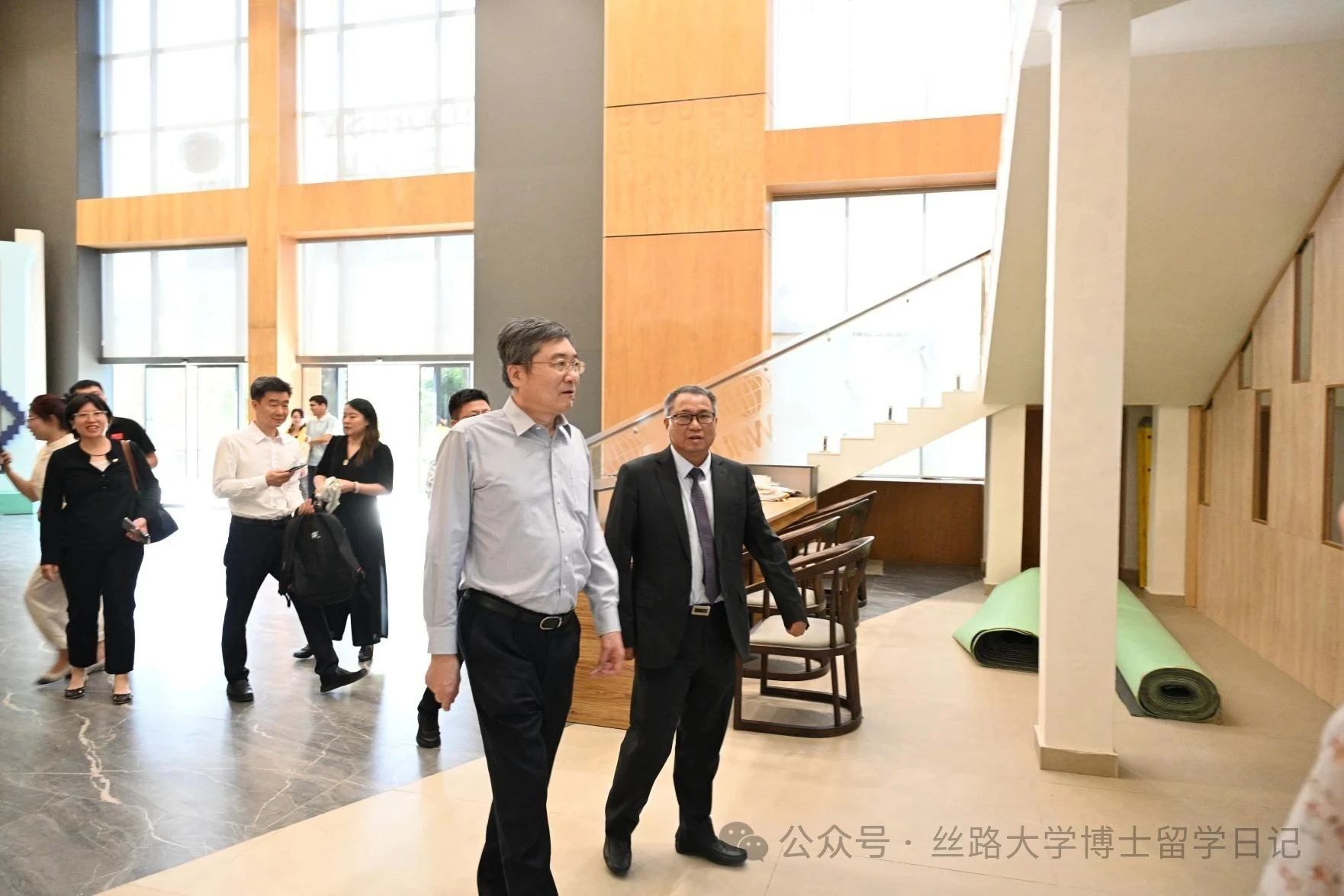 在参观过程中,张旭主席对丝路大学的校园建设、教学设施及学术氛围给予了高度评价。他表示,丝路大学作为国际教育的交流平台,为推动全球旅游教育和旅游业的发展做出了重要贡献。