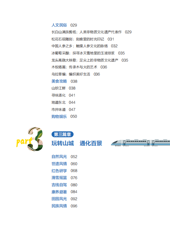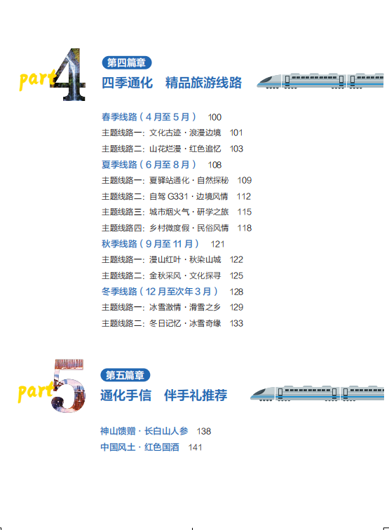 在内容编排上,我们完全站在游客视角,立足通化,联动整个沈白高铁沿线,全新推出了10条精品旅游线路。线路串联北京、沈阳、通化、长白山等目的地,每条线路都提供了多个方案备选,时间上也可以自由搭配,还附上了“通化味道”美食和店铺推荐,“通化手信”伴手礼推荐。无论是避暑休闲、冰雪旅游、世遗探秘、亲子研学、边境自驾,都能找到最佳的选择。全书共收录了180张图片和摄影作品,其中半数以上是通化四季主题摄影大赛的作品,涵盖“吃住行游购娱”旅游要素的方方面面,是一次对通化文旅全方位的宣传展示。
